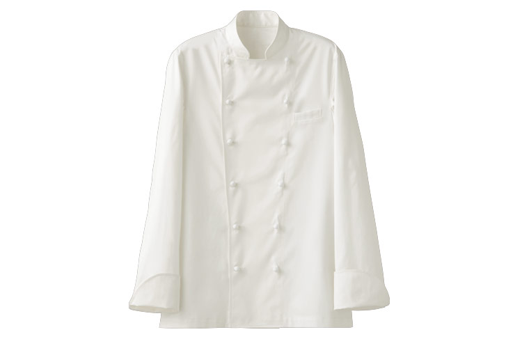 希少なオーガニックコットンの超長綿を贅沢に使用した究極のコックコート。シルエットと着心地にこだわり、特別な空間にふさわしい仕上がりです。