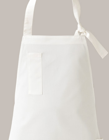 有機栽培の綿「オーガニックコットン」を贅沢に使用した胸当てエプロン。付け心地はふっくらと軽く、なめらかな肌ざわりが特徴です。料理人として最高のパフォーマンスができるよう、利便性は残しながらも、無駄のないデザイン性にもこだわって作られています。格式高い空間にふさわしい胸当てエプロンです。