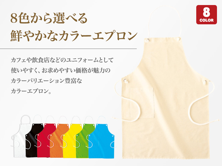トムスのカラーエプロン。鮮やかなカラーバリエーション8色のリーズナブルなエプロン!