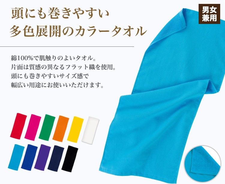 トムスのカラーフェイスタオル。頭にも巻きやすいカラータオル!