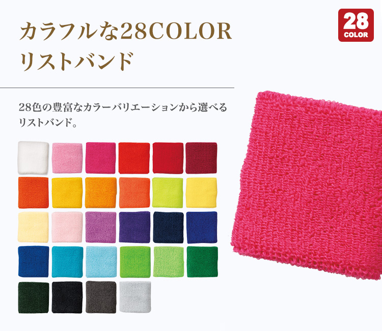 豊富な28色のカラーバリエーションが魅力のリストバンド!
