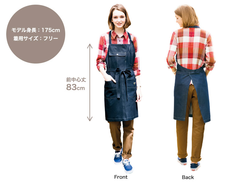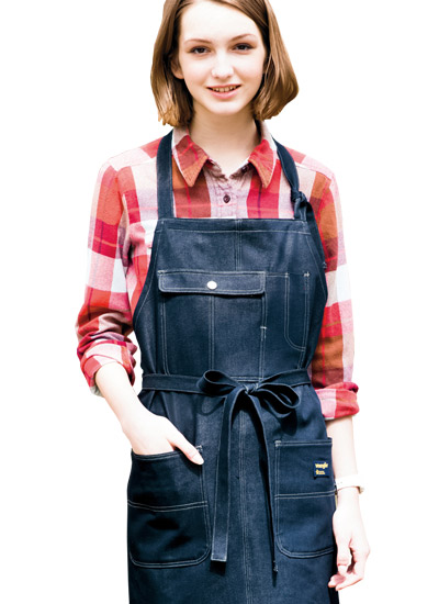 ブランドの良さを生かしたベーシックで飽きのこないデザインのデニム風エプロンは、ストレッチ素材で作業効率も高く機能的です。