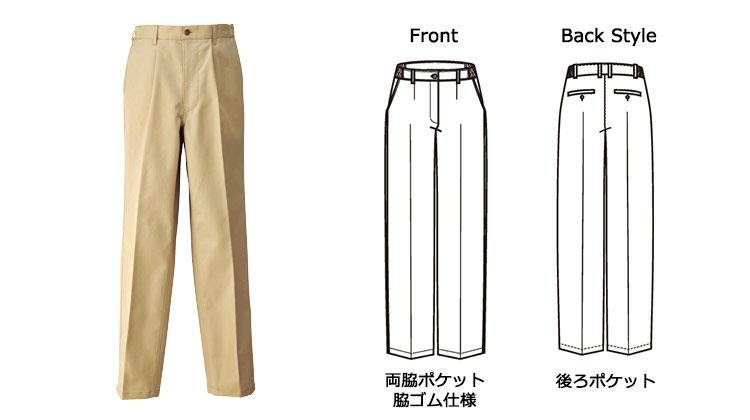 シャーリングチノパンツワンタック[男性用](61-HS2602)