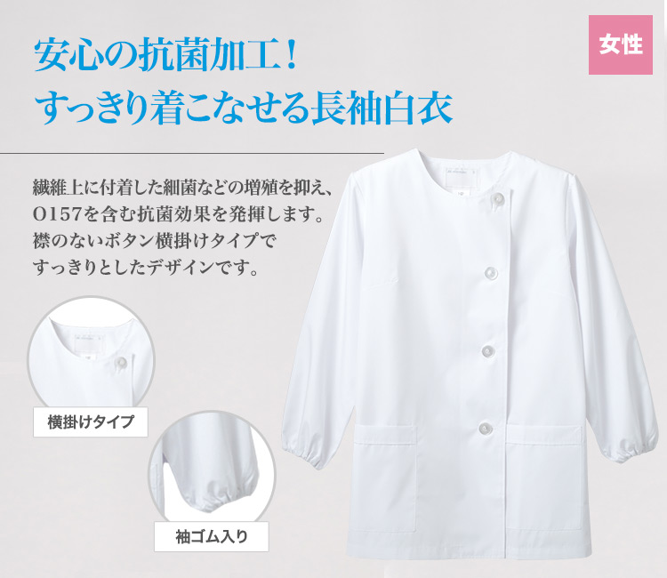 【仕様】両脇ポケット付、O157対応の抗菌加工。