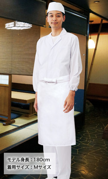 - 両脇ポケット付き、左胸ポケット付き、袖口ゴム入り、比翼ボタン、長袖