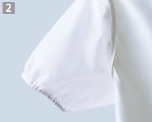 半袖の内側はネットがついており、内側からのチリや体毛などの落下を防ぎます。