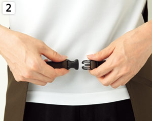 後ろ身頃の腰紐はアジャスターで簡単に装着、調節可能。前に結び目がなく、スッキリとしたシルエットになります。