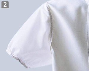 袖の内側にネットがついていて、衣服内部からのチリ、体毛などの異物の落下を防ぎます。