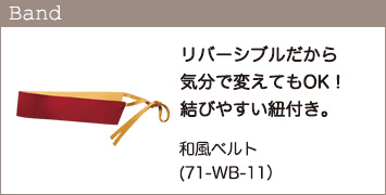 柄物を上品に引き立てる深みのある色味の和風ラップスカート。腰紐タイプで簡単に着用できます。