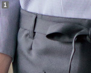 左側から腰紐を通すデザインに加え、ダーツを入れたスマート設計。腰回りがもたつかずフィットします。