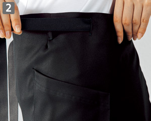 ロング丈エプロンながらスリット入り仕様で、動きを制限せず、作業性抜群!