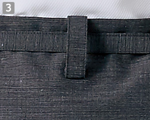 後ろ部分に腰紐ループがついてるため、着用ズレを防ぎます。