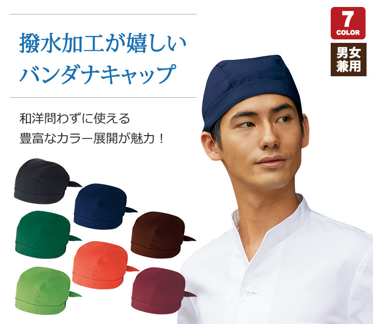 トータルコーディネートのアクセントにぴったりな7色のバンダナ。水をはじいて汚れにくい撥水加工済み。※フリーサイズです。