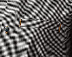 左胸にポケットが付いています。カン止めの配色がおしゃれ。