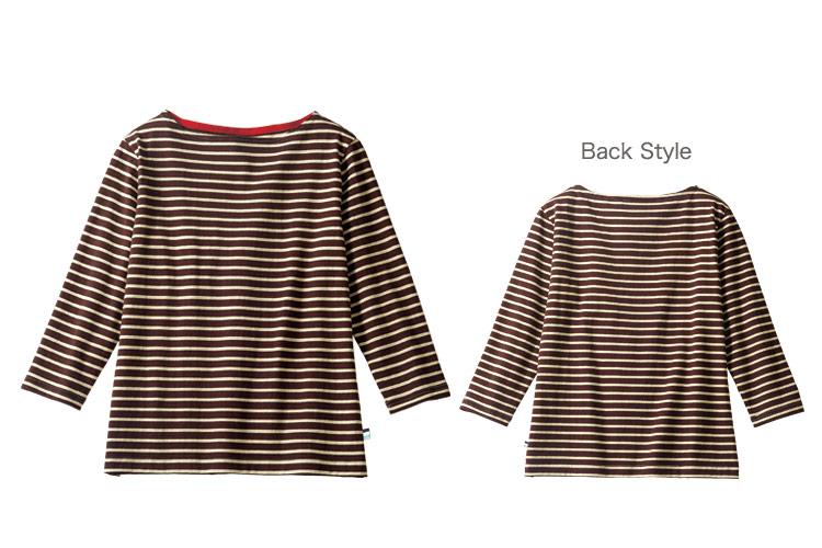 さまざまなスタイルに合わせやすい、ボーダー柄の8分袖カットソー。顔まわりをすっきりとみせるボートネックは、ちらりと見える裏地の赤色がおしゃれ。綿100%のニット素材だから適度な保温性でシーズン問わず着用でき、厚手タイプなのでしっかりとした質感が得られます。