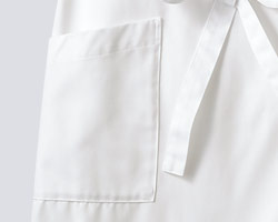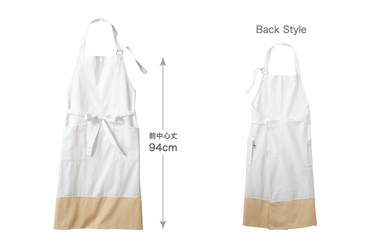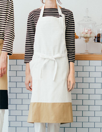 ツートンカラーがおしゃれな首掛けエプロン。左右のポケットはマチが付いており、抜群の収納力。ハリのあるツイル素材なので、しっかりと耐久性があります。やさしげなカラー展開で、ナチュラルな空間にぴったりです。