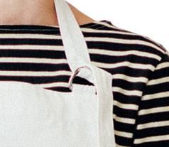 ツートンカラーがおしゃれな胸当てエプロン。バックルで紐の長さを調節できる首掛けタイプです。両脇のポケットはマチ付きで収納力抜群。生地は耐久性に優れたツイル素材を使用し、綿のもつやわらかな質感が得られます。