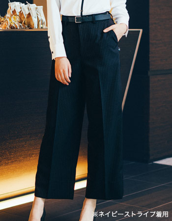 トップスを選ばないベーシックなワイドパンツ。腰まわりは程よくフィットし、きれいなシルエットに仕上がっています。「PAMIO」素材を使用しており、ウールのようなしなやかな質感。ストレッチ性があり動きやすく、長時間穿いていても疲れにくいパンツです。