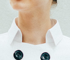 やや小さめの台襟を採用。首元をすっきりと見せてくれます。