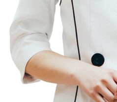 生地には抗菌加工が施されています。食中毒の原因となるO157を含む菌の増殖を抑制し、衣類を常に清潔にキープします。制電効果により、チリやホコリが付着しにくいため、厨房に異物を持ち込まず衛生的。