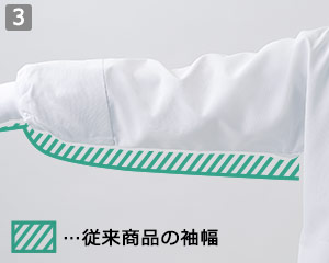 肘から下はやや細めの仕上げに。盛付け作業等での汚れを防ぎ、作業性も高めます。