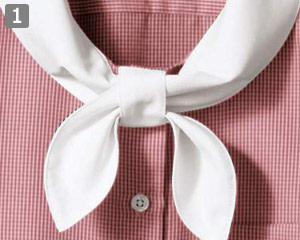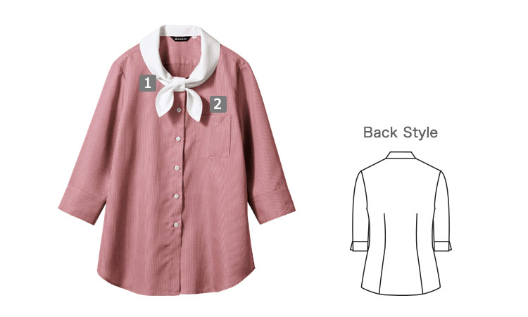 白い襟が目を引き、大き目リボンが可愛いウインカーチェックのブラウス。