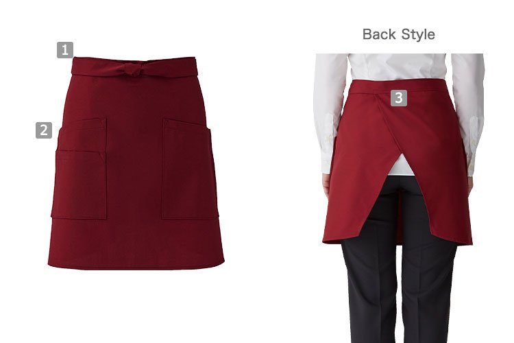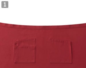 メーカーの方にお話を伺ったところ、腰紐のカーブの角度によりフィット感や動きやすさが変わってくるため、何度も型紙を修正し、たどり着いた形だそうです!また幅広エプロンは細身の女性だと骨盤にポケットが当たって使いにくいという声から、実際に働いている女性の意見を参考にポケットの位置にもこだわったそうです。私も試着してみましたが、心地よいフィット感に感動しました!