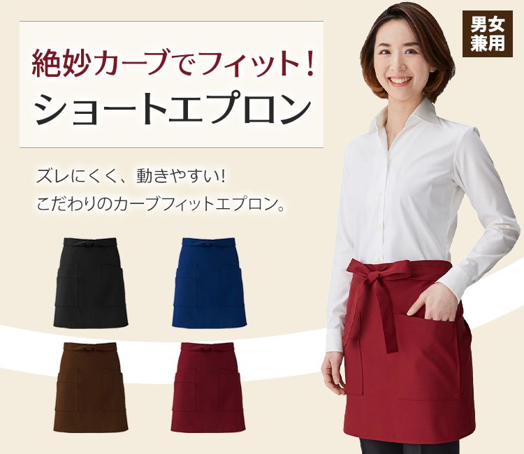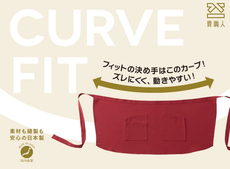 心地よさと動きやすさにこだわったカーブフィットシリーズ。ズレにくく作業性に優れているため、カフェやレストランなどの飲食店で活躍します!素材も縫製も安心の日本製で、こだわりぬかれたエプロンです。