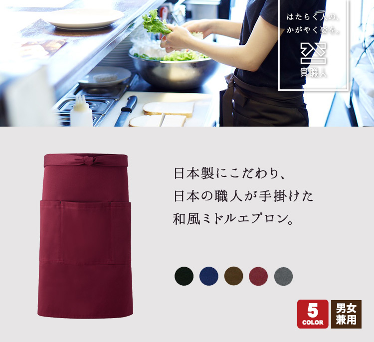 <こだわりの日本製>高級感ある和風ミドルエプロン[男女兼用](75-MW20)