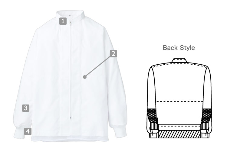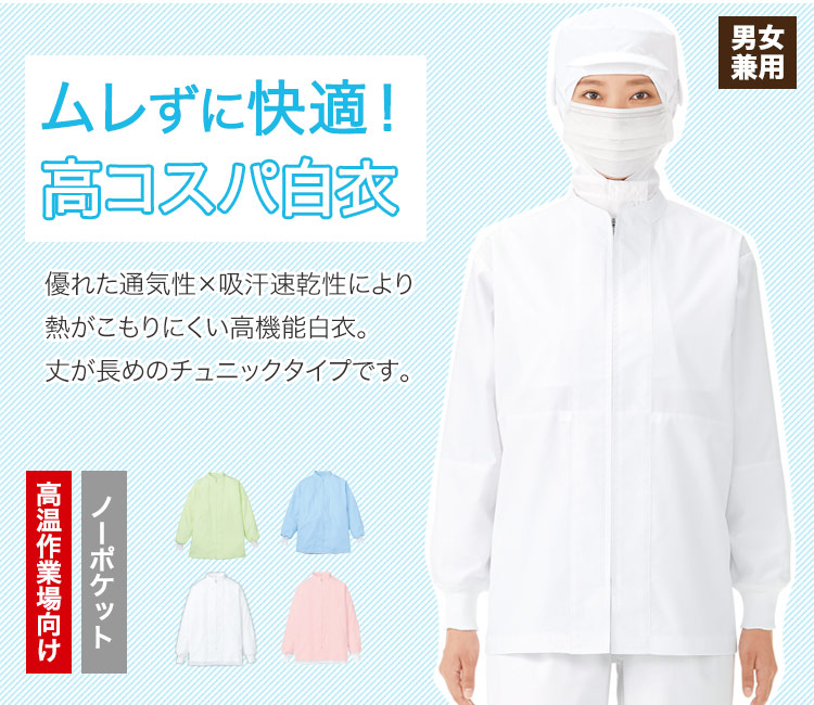 高温作業場に適した食品工場白衣。優れた通気性と吸汗速乾性で快適な着心地が続きます。高性能素材ながら低価格を実現した高コスパジャンパー!
