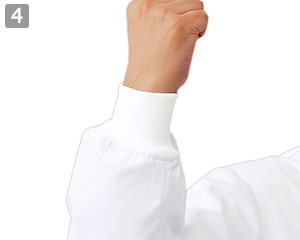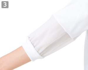 肘下部分から下に二重袖を付け、異物混入防止をしっかりサポートします。