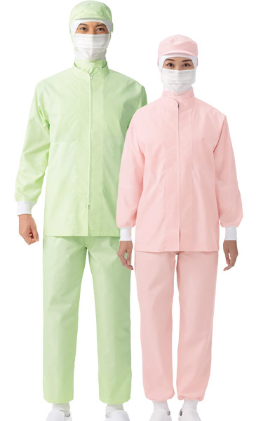 - 制菌加工、透け防止、吸汗、速乾、制電、軽量、通気、異物混入防止、工業洗濯可