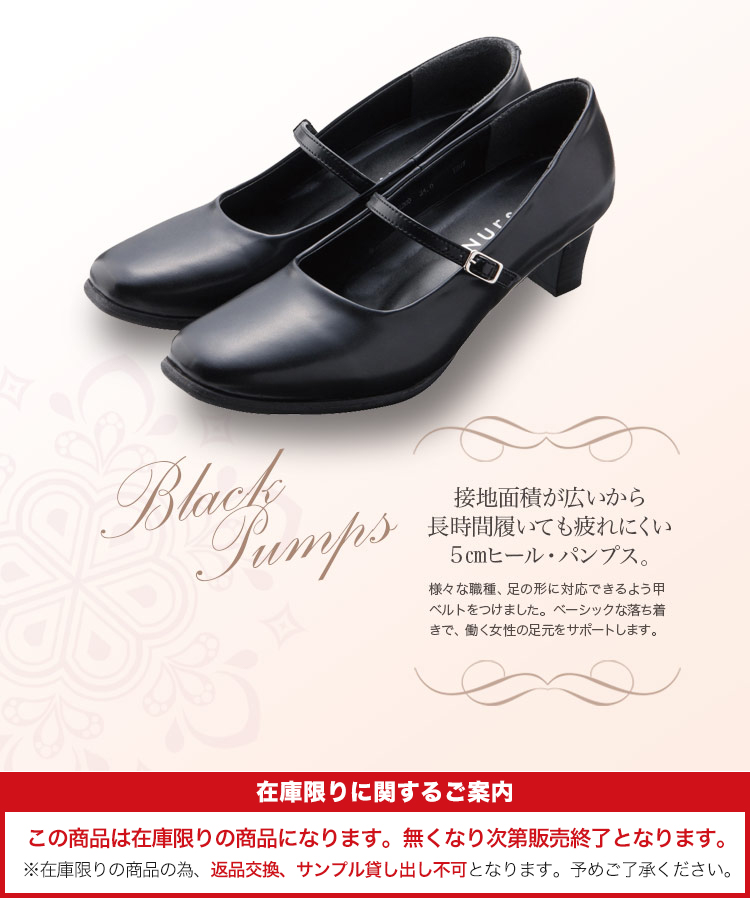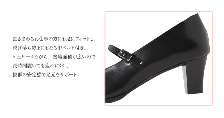 【在庫限り】[通年]足が疲れにくい、甲ベルト付き5㎝ヒール・パンプス(01-F2200)