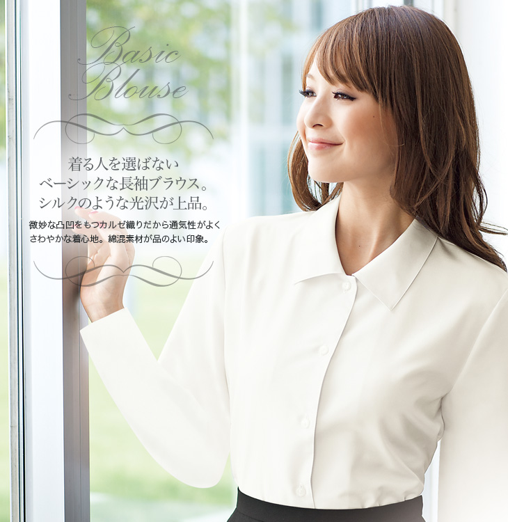 【在庫限り】[秋冬用]シルクのような光沢のベーシックなブラウス[長袖](21-01040)