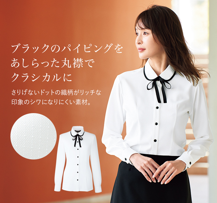 高めの襟がポイント・華やかスウィートリボン付ブラウス[長袖](21-01072)
