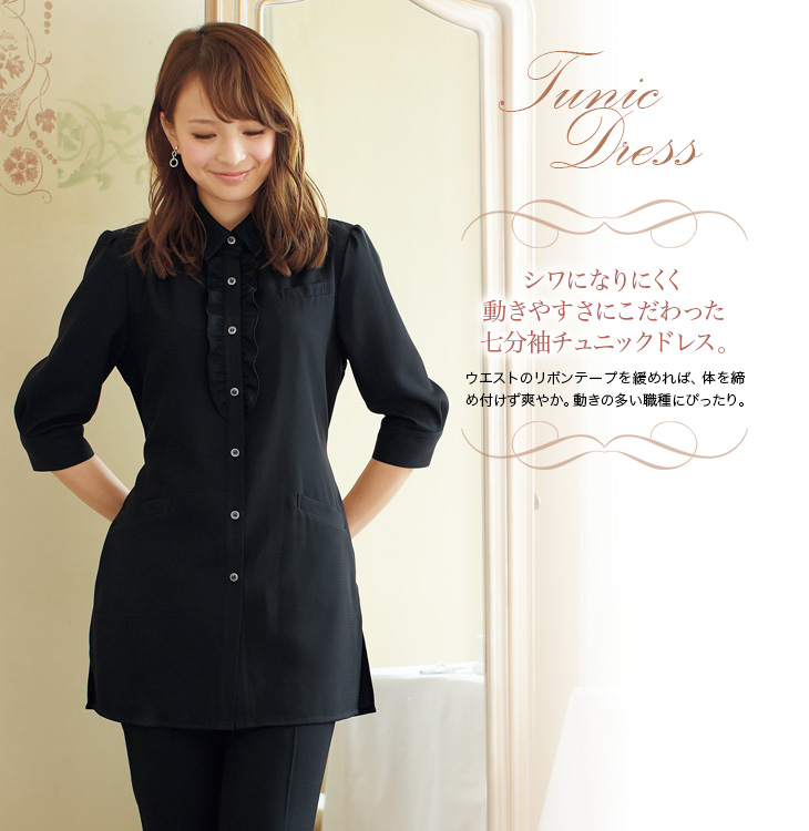 【在庫限り】[春夏用]シワになりにくく動きやすい・チュニックドレス(21-01076)