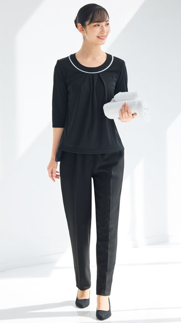 デコルテを美しく魅せるカットソー。エステサロンや美容医療、クリニックの制服におすすめです。