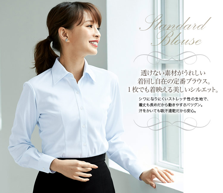 【在庫限り】[通年]透けない素材がうれしい定番ブラウス[長袖](21-01165)
