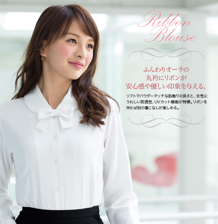 【在庫限り】[通年]ふんわり丸衿とリボンで安心感を与えるブラウス[長袖](21-01170)
