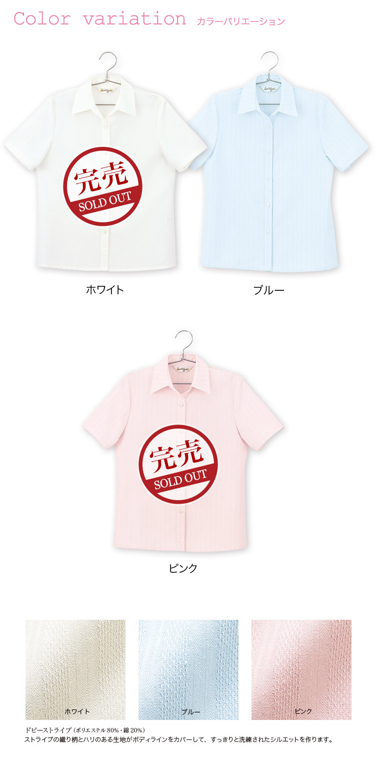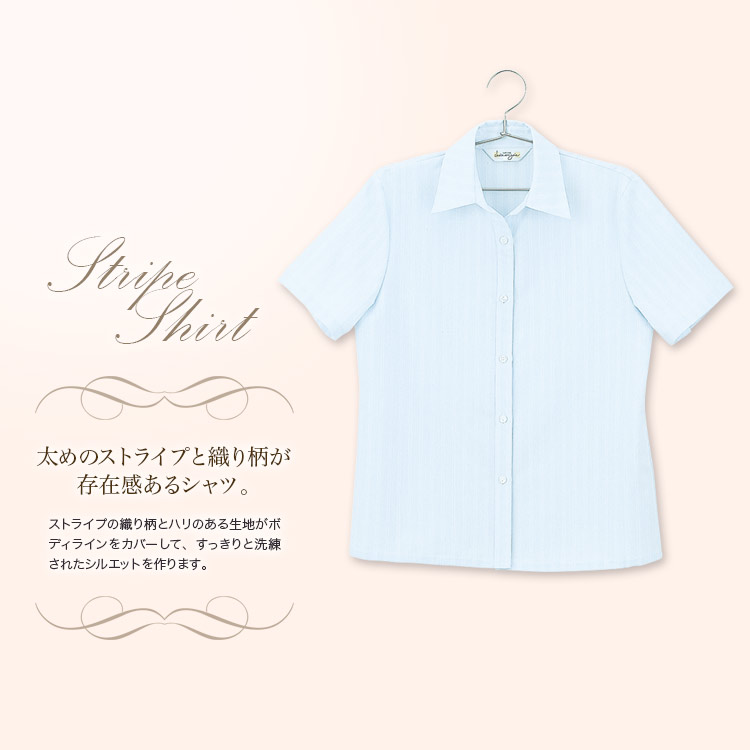 【在庫限り】[通年]太めのストライプと織り柄が存在感あるブラウス[半袖](21-06055)