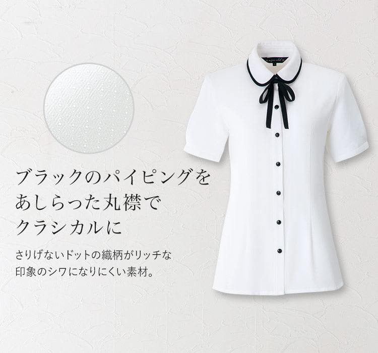 【在庫限り】[通年]丸襟がかわいい!華やかスウィートリボン付ブラウス[半袖](21-06072)
