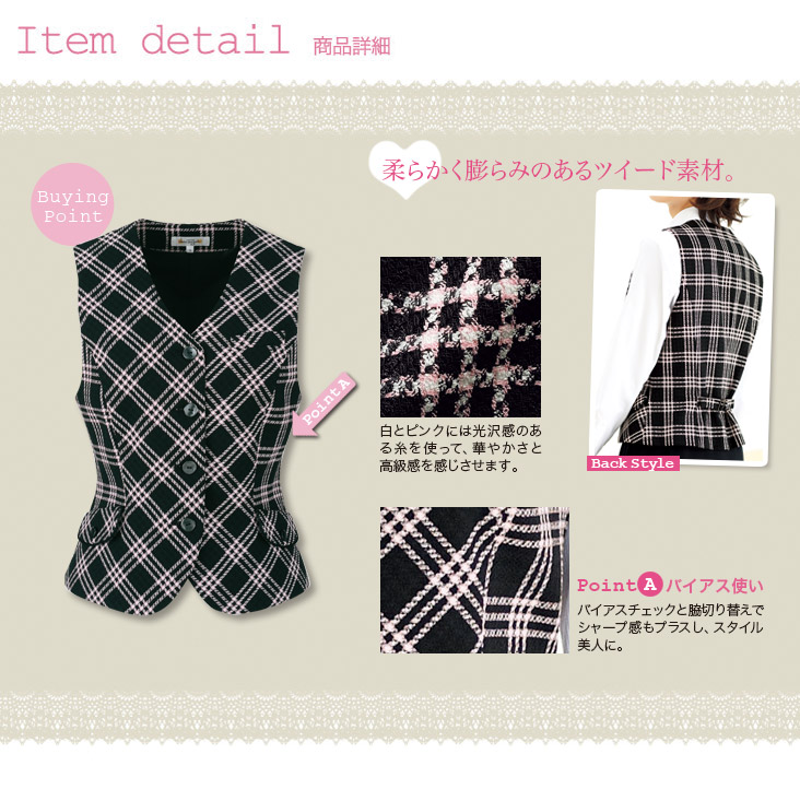 【在庫限り】[通年]ツイード素材のベスト(21-11400)