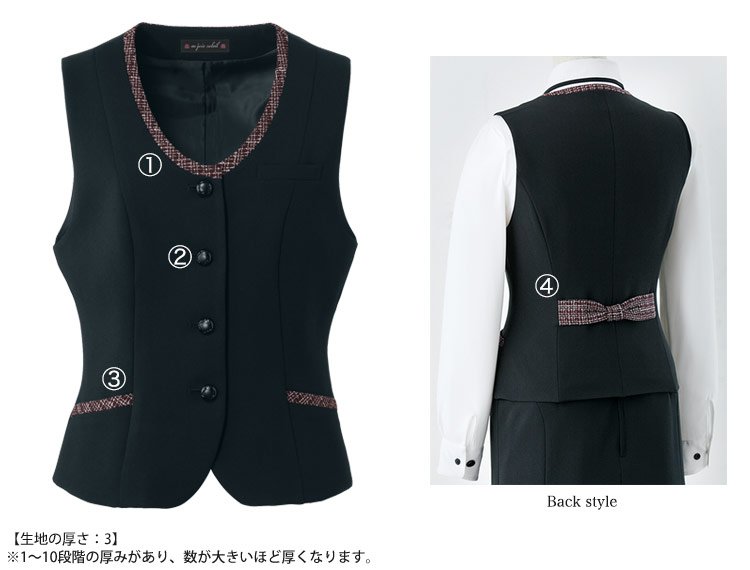 ツイードのアクセントを効かせた、上品なベスト。ソフトな2WAYストレッチ素材は、体になじみ、ドレープ感もあるため美しいシルエットを作ります。