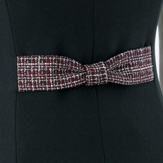 バックに施された、ツイード素材のリボンベルトが上品かわいい。