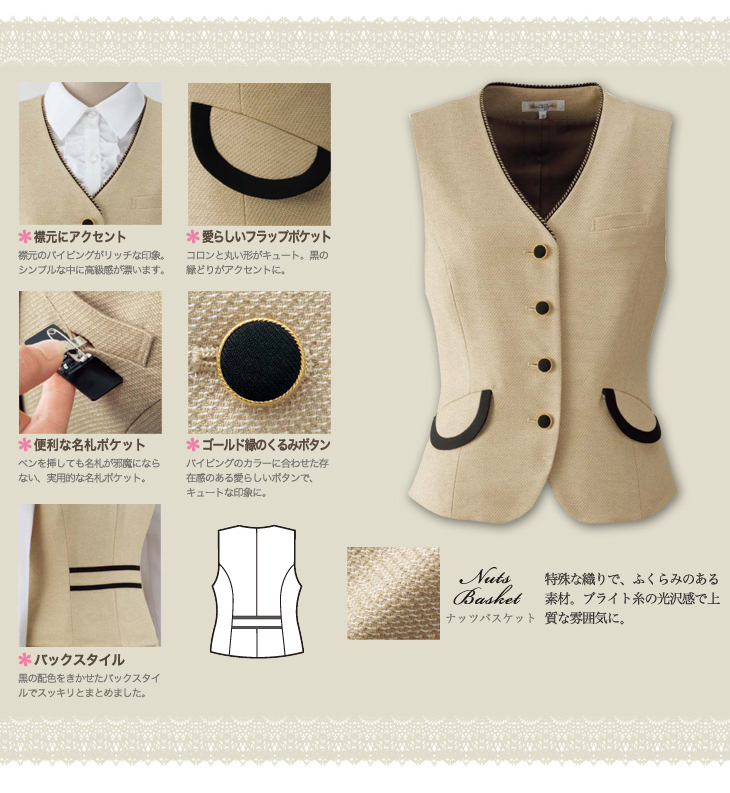 ベージュ×黒の組み合わせが綺麗でかわいい気品漂うベスト。