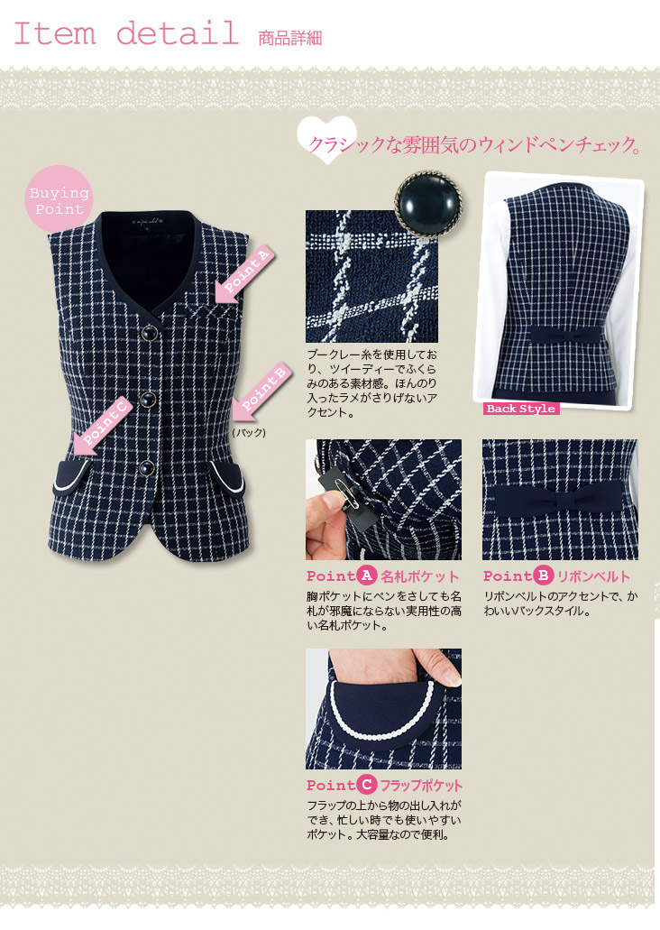 【在庫限り】[通年]ベージュ×ネイビー・チェックのベスト(21-11630)