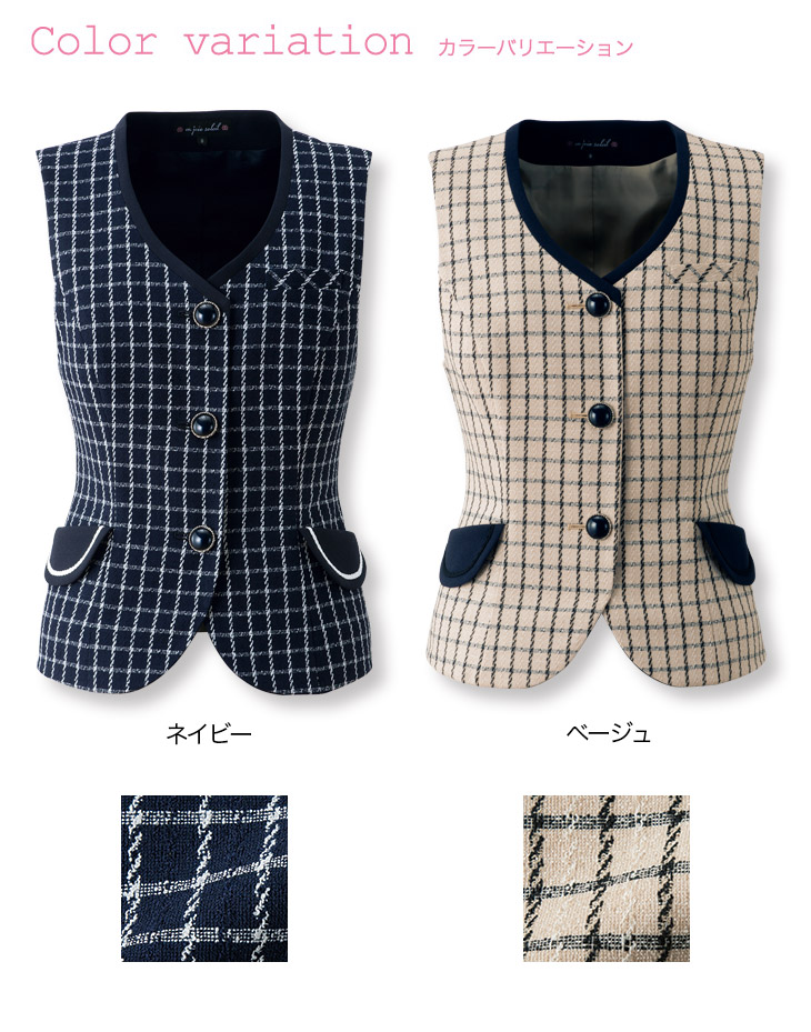 【在庫限り】[通年]ベージュ×ネイビー・チェックのベスト(21-11630)