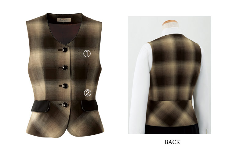 【在庫限り】[通年]ベスト[カフェオレチェック](21-11880)