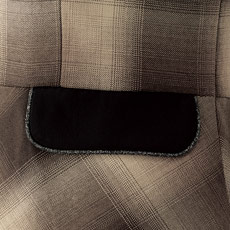黒の配色を施したフラップ付きのポケット。パイピングテープがアクセントになっています。