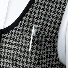 定番のチドリ柄でありながら、ツイード風の杢調の表現でおしゃれな雰囲気漂う素材。着心地が軽く、ニット素材で伸縮性に優れ、動きやすくシワになりにくいのも特徴です。